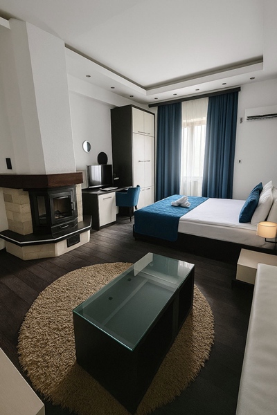 There are 11 accommodation units at your disposal: 9 superior rooms and 2 deluxe rooms. All accommodation units have LCD TV, A/C, telephone, mini bar, safe, wi-fi internet. The deluxe Cupid room has a fireplace with a fireplace. Deluxe room Aqua contains an aquarium with fish. Each room and apartment has a separate bathroom, where you have at your disposal WC and hairdryer. So, in the accommodation units of the hotel “Soko Terme” you will find everything that a modern tourist needs. At the guest’s request, a baby cot can be provided.